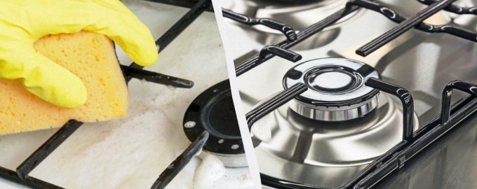 Med hjälp av beprövade metoder blir rengöringen av spisen mycket enklare och effektivare. Spisen kommer att tvättas lätt och kommer att skina / collage