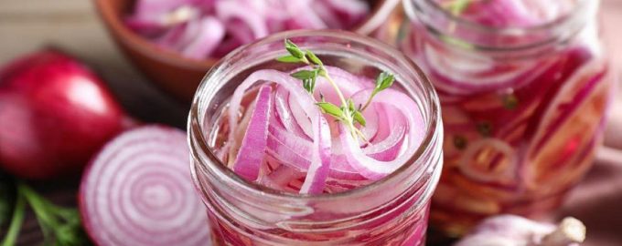 Lök kan syltas med olika ingredienser. Inlagda lökar kan tillagas på några minuter / foto depositphotos.com Inlagda lök tas ofta för sallader eller serveras